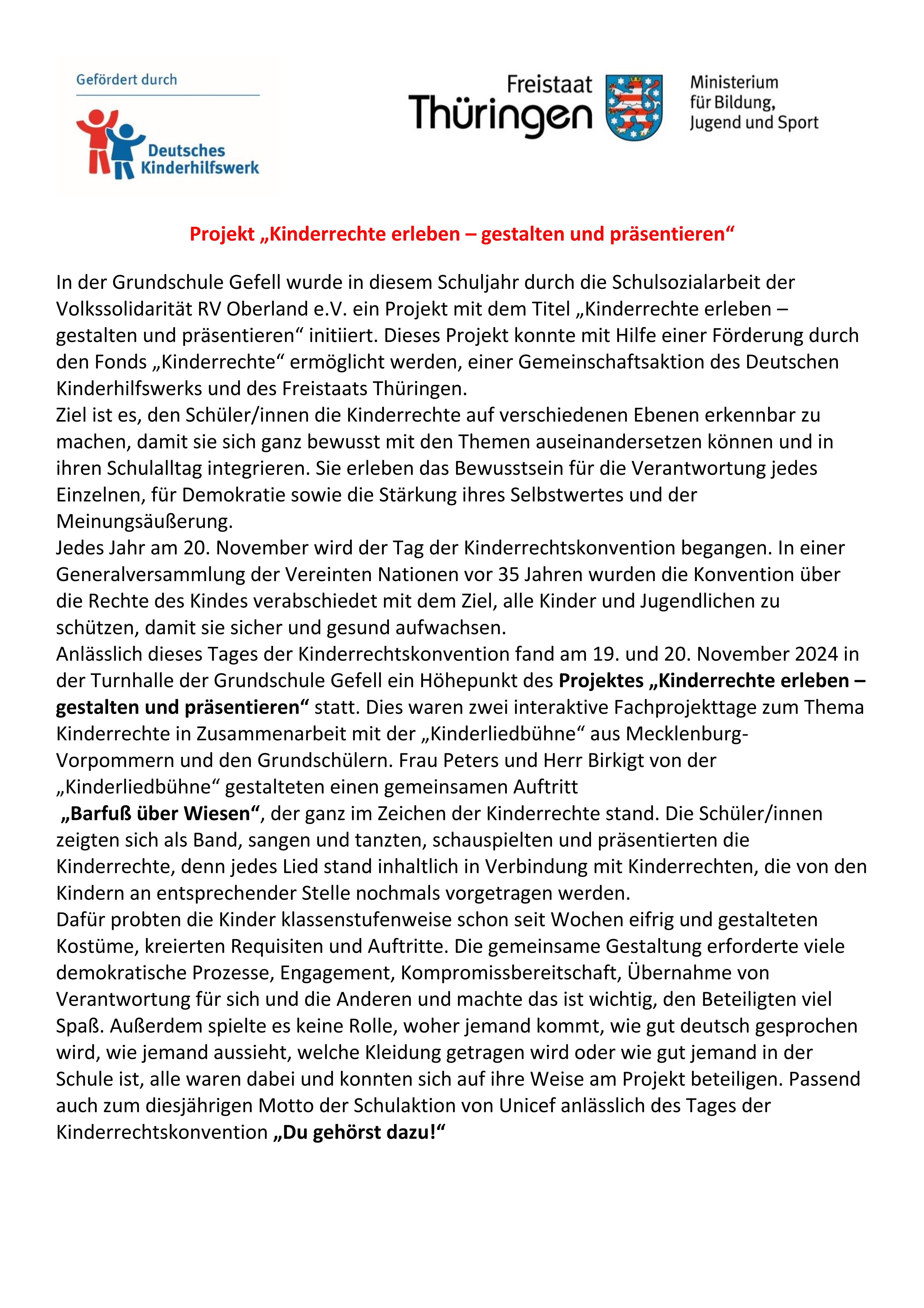 Projekt zum Thema Kinderrechte