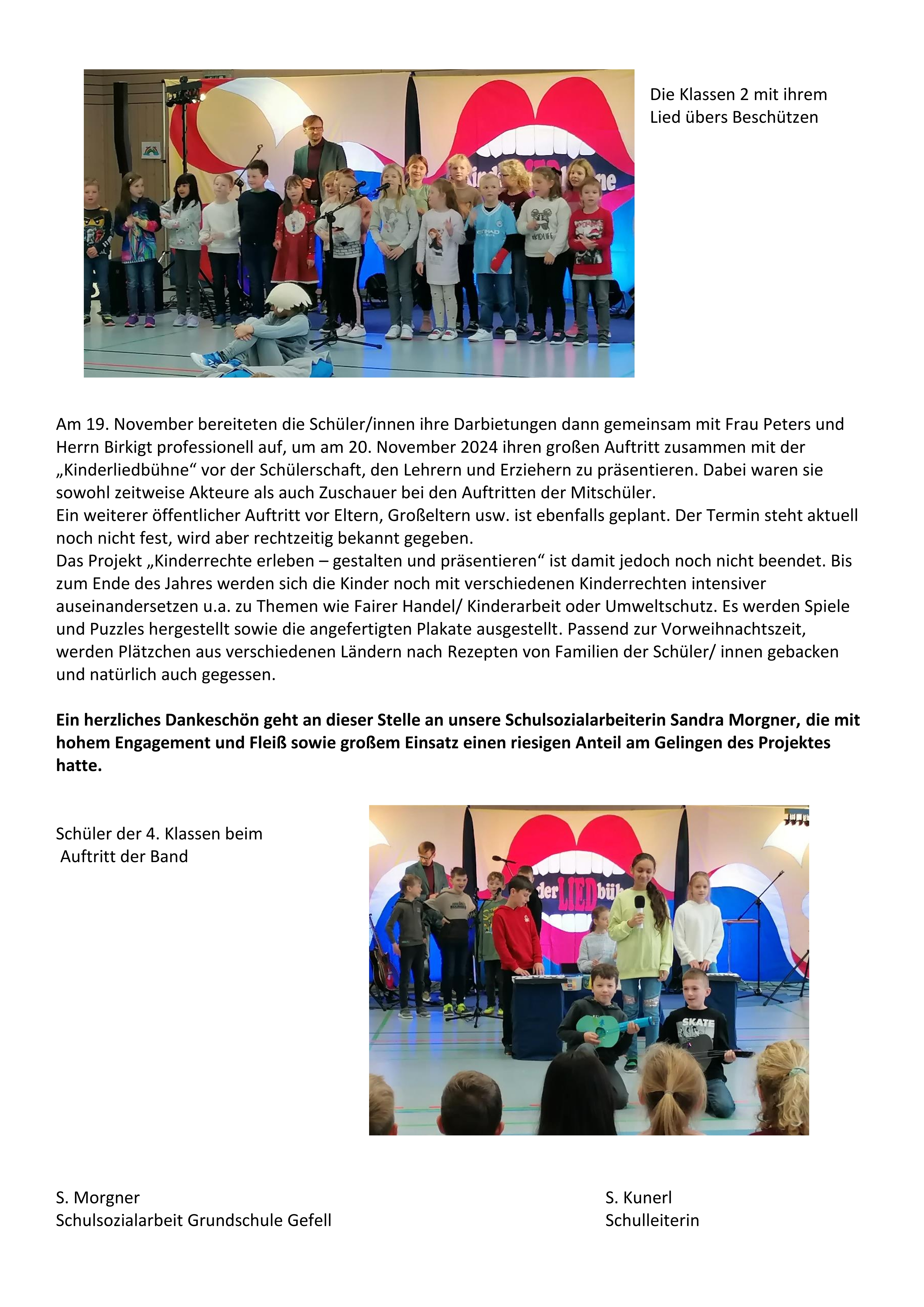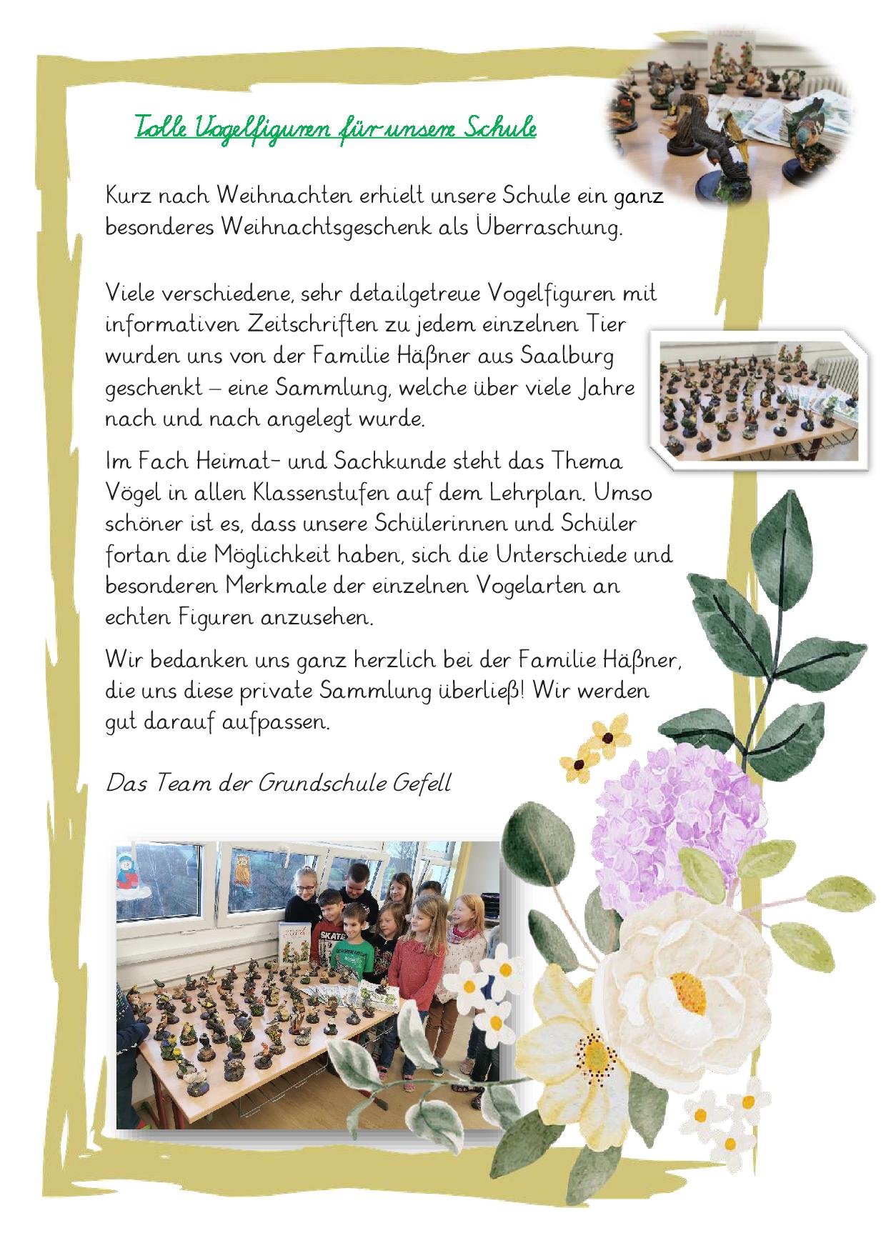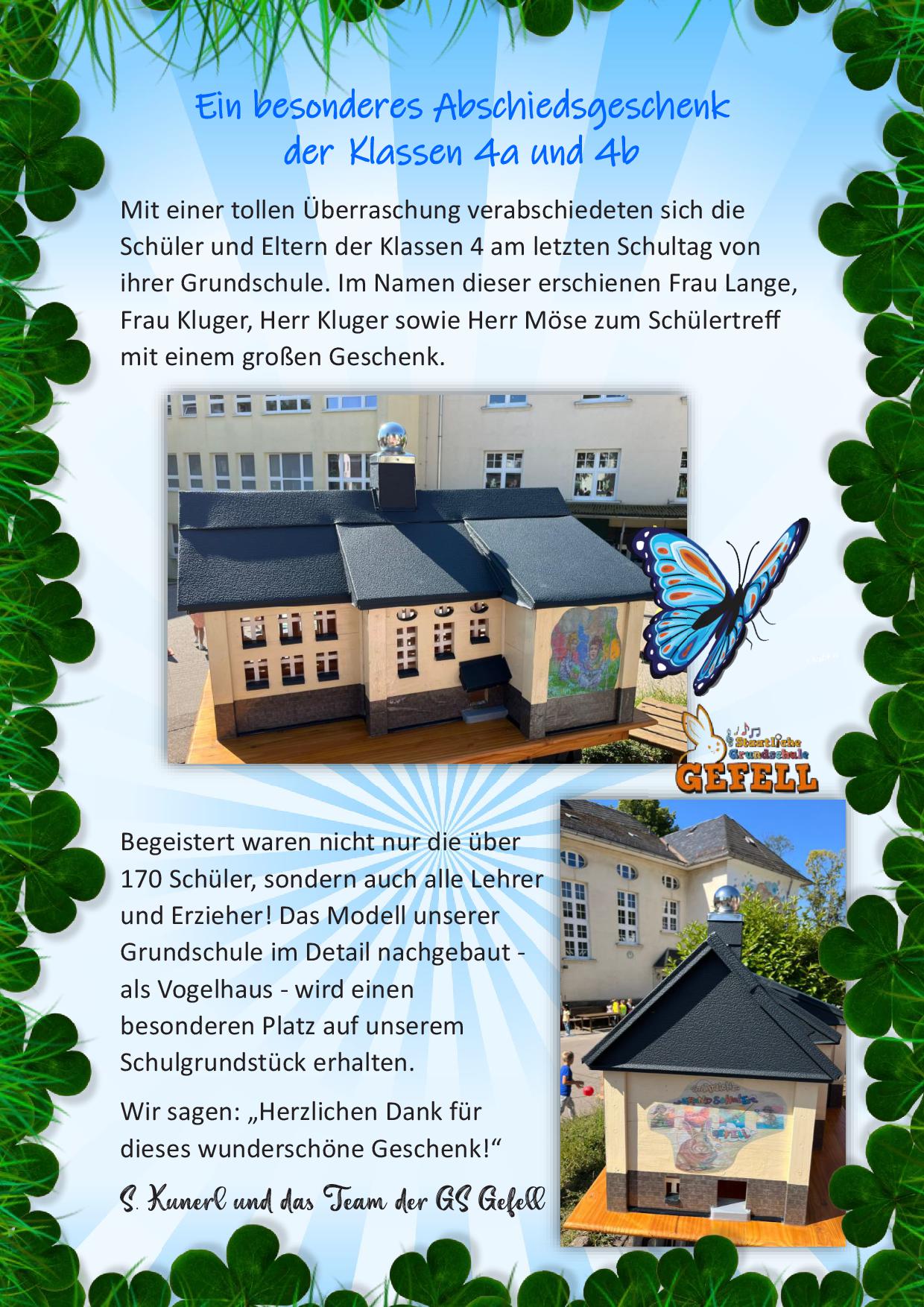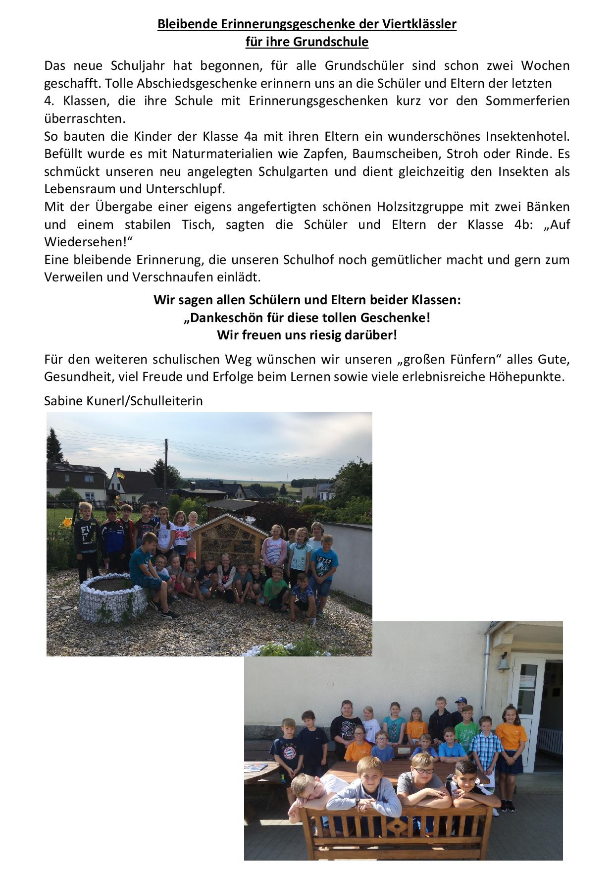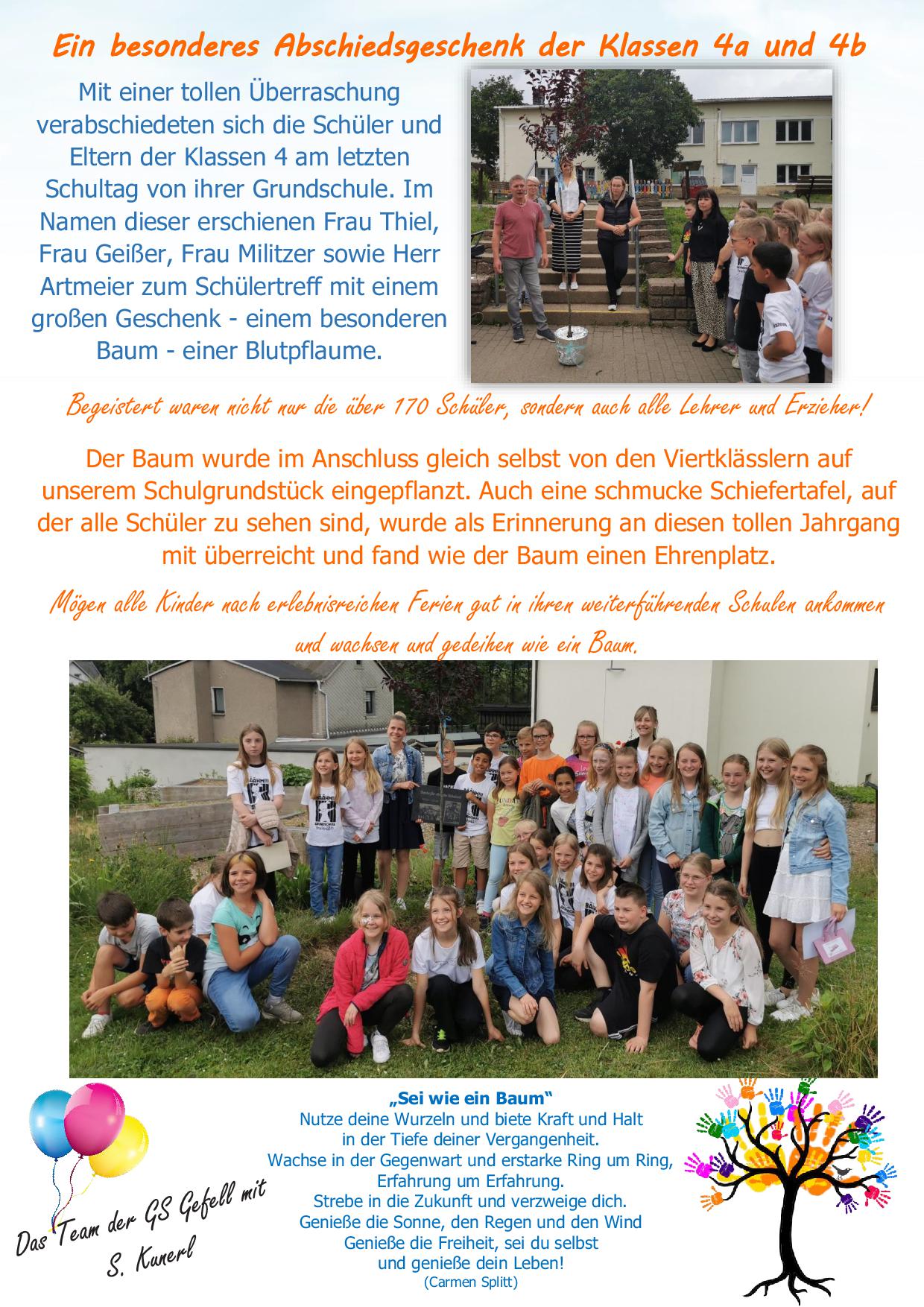 Abschiedsgeschenk der 4. Klassen
