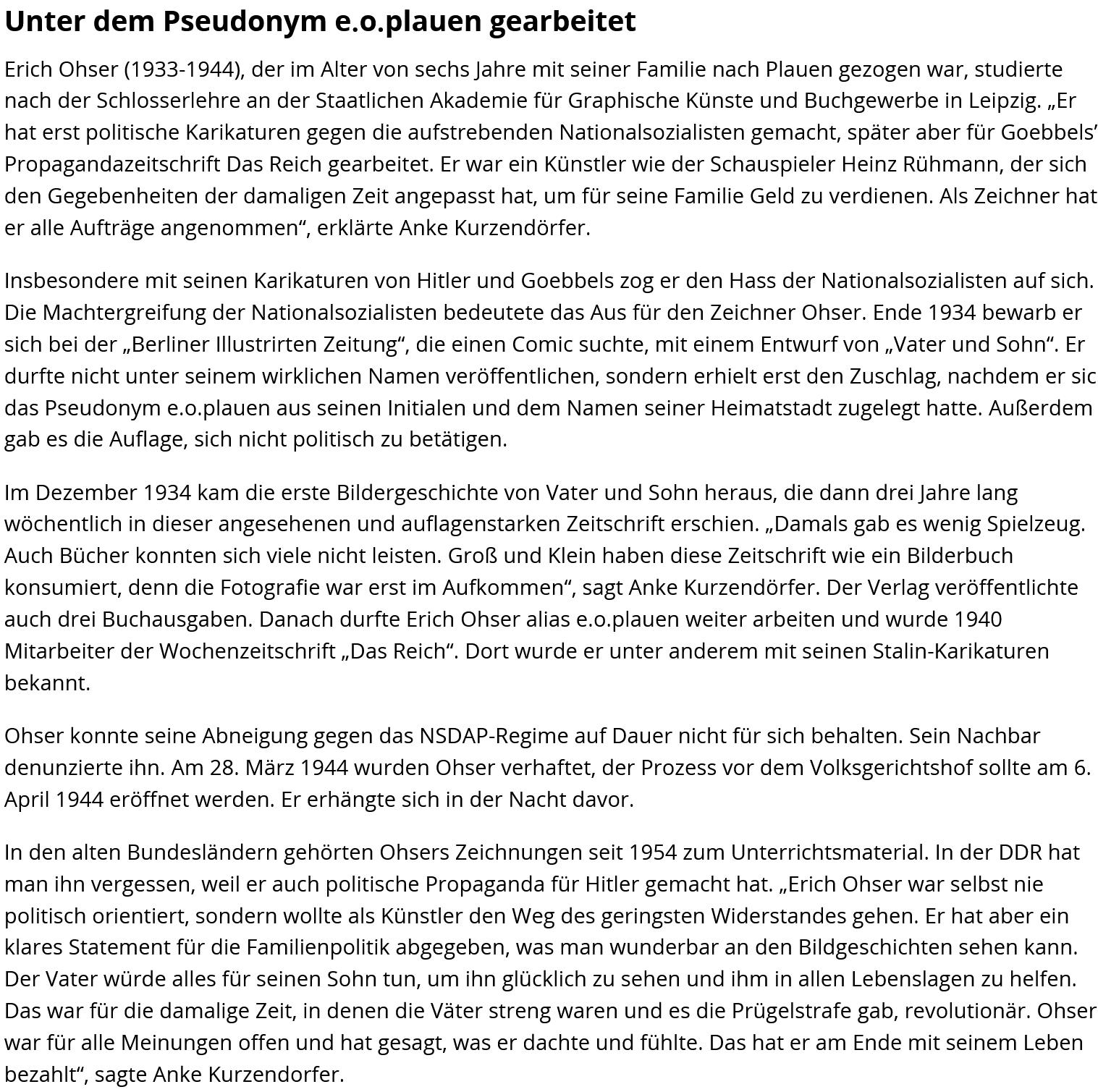 Projektwoche über den Plauener Karikaturisten Erich Ohser