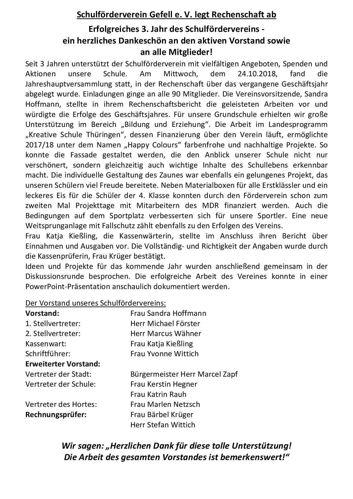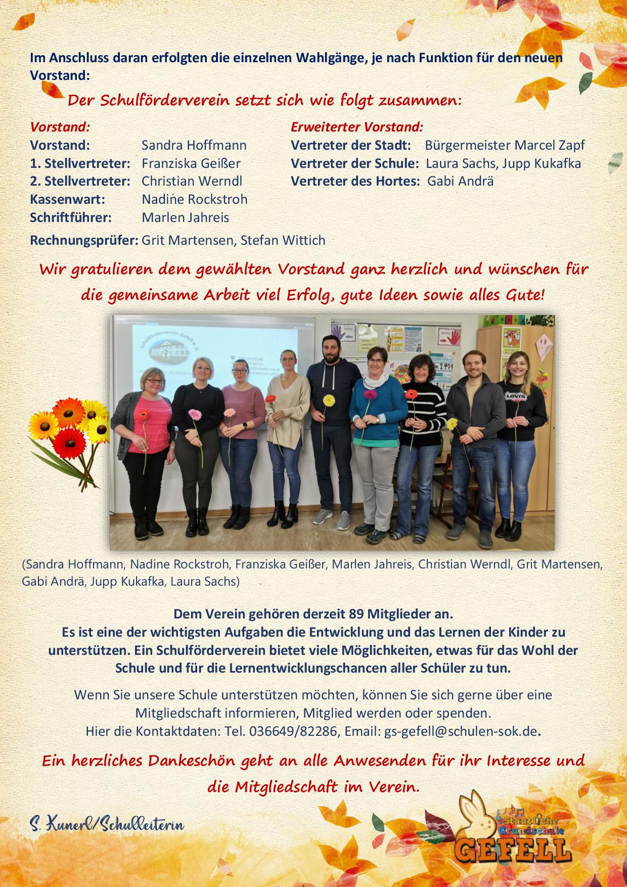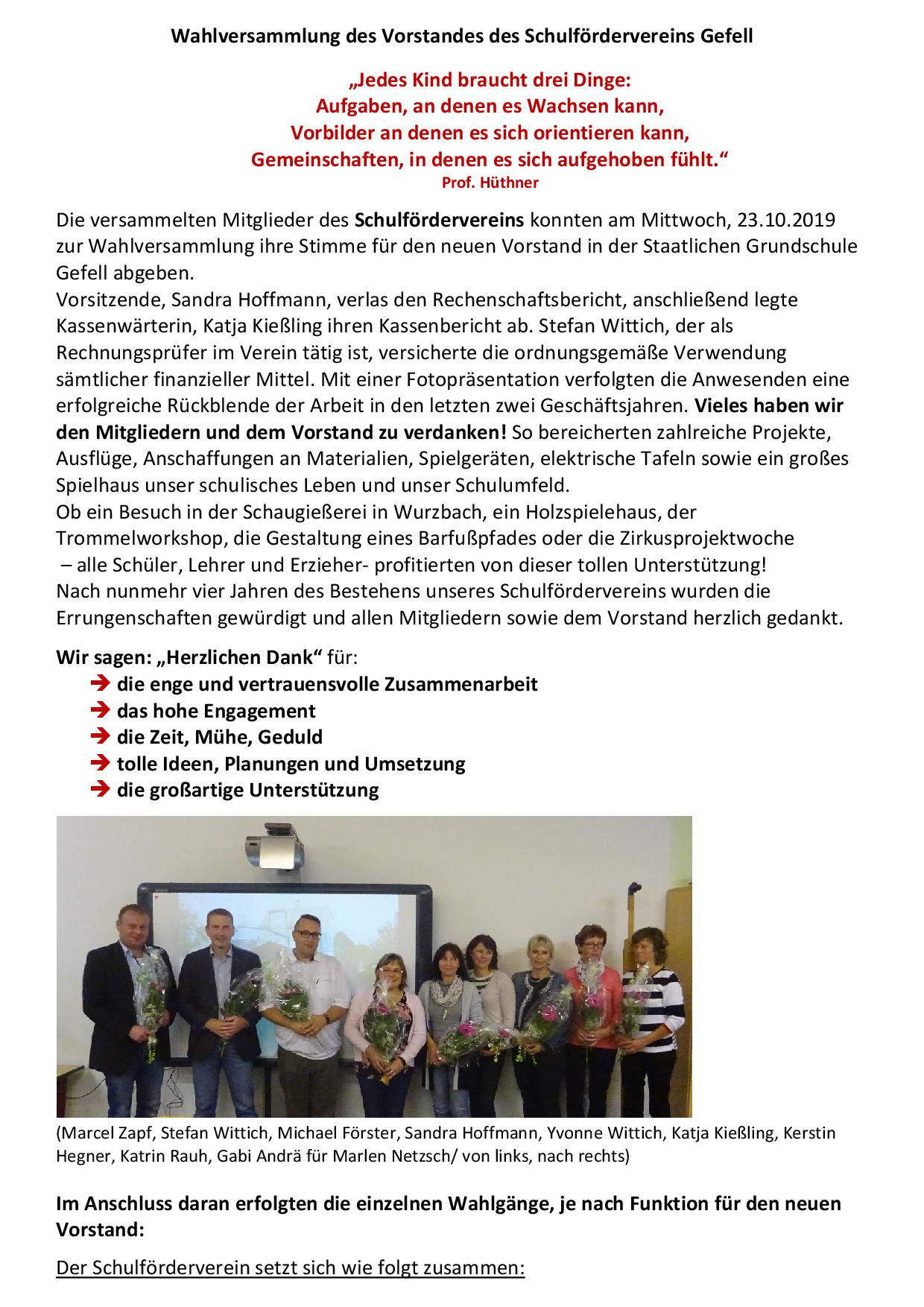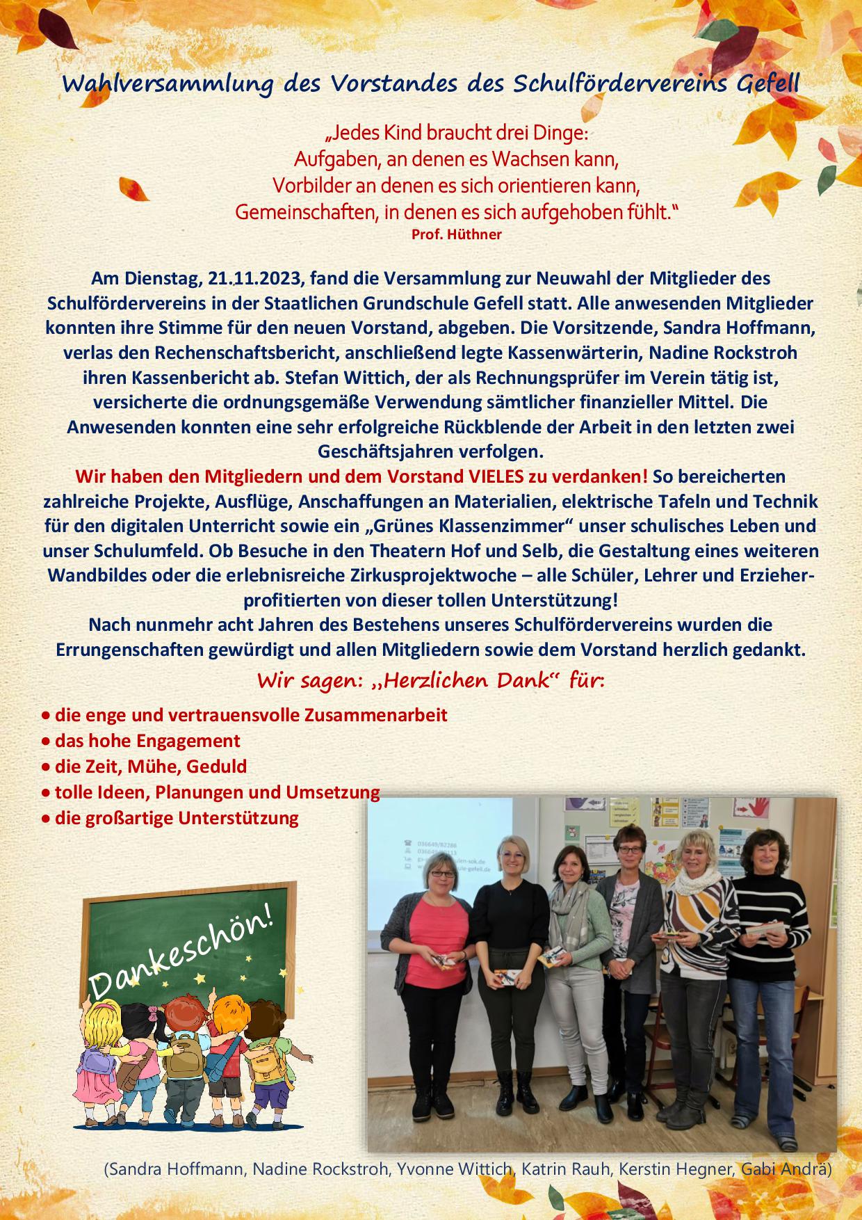 Neuwahl des Schulfördervereins-Vorstandes