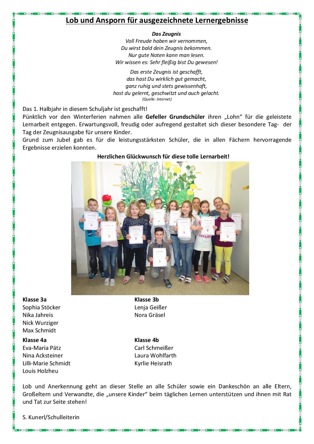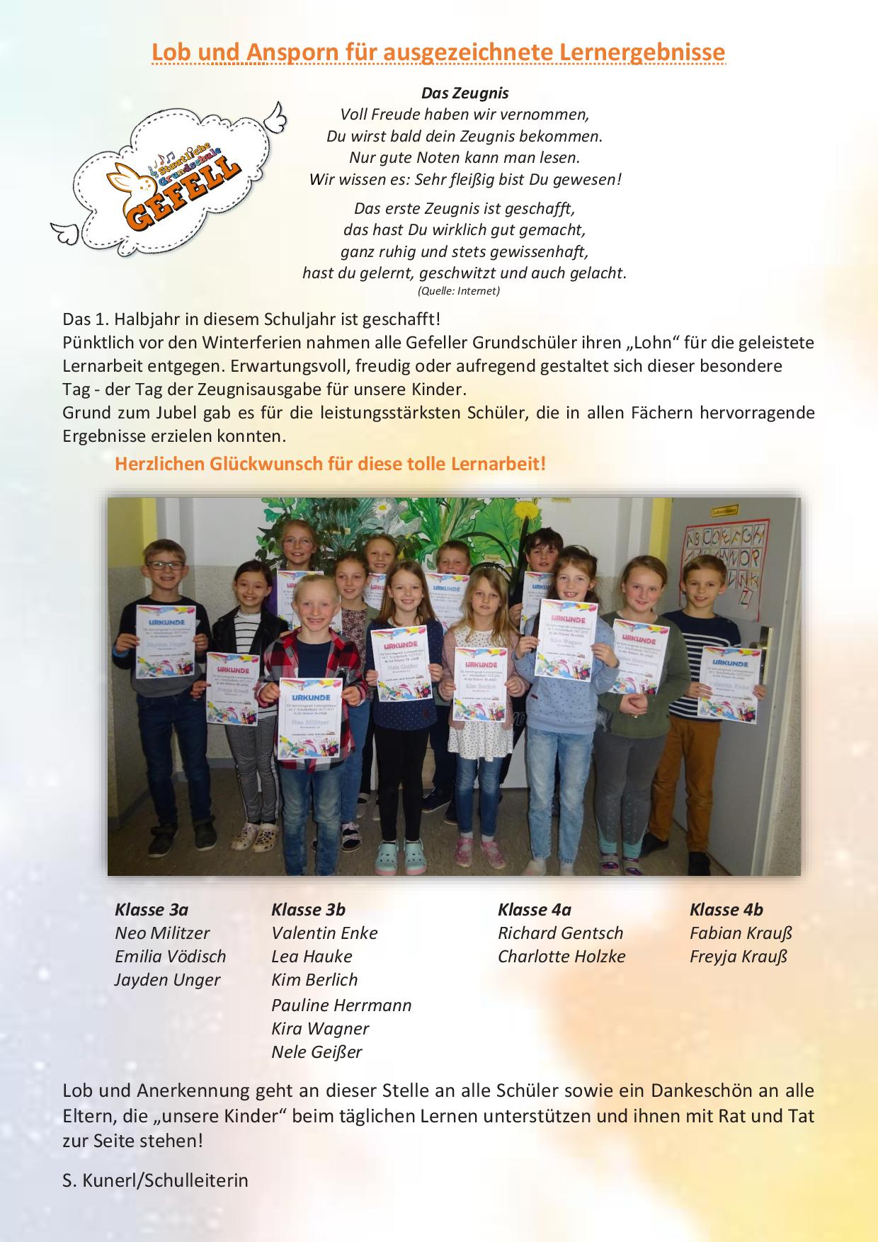 Unsere besten Schüler im ersten Halbjahr