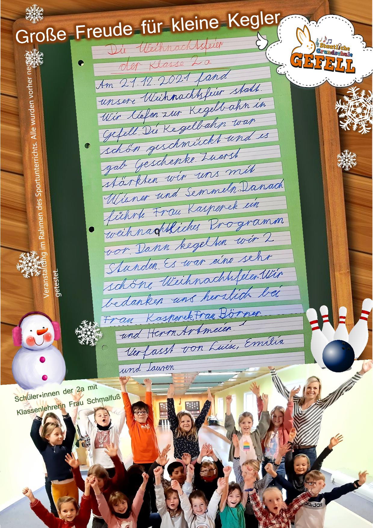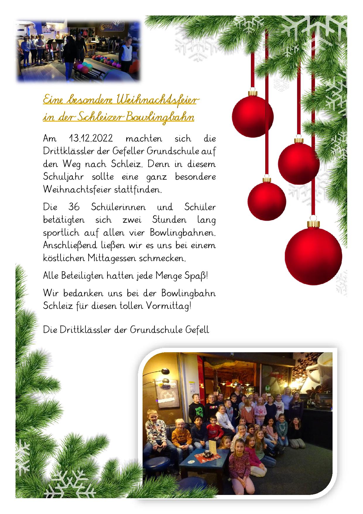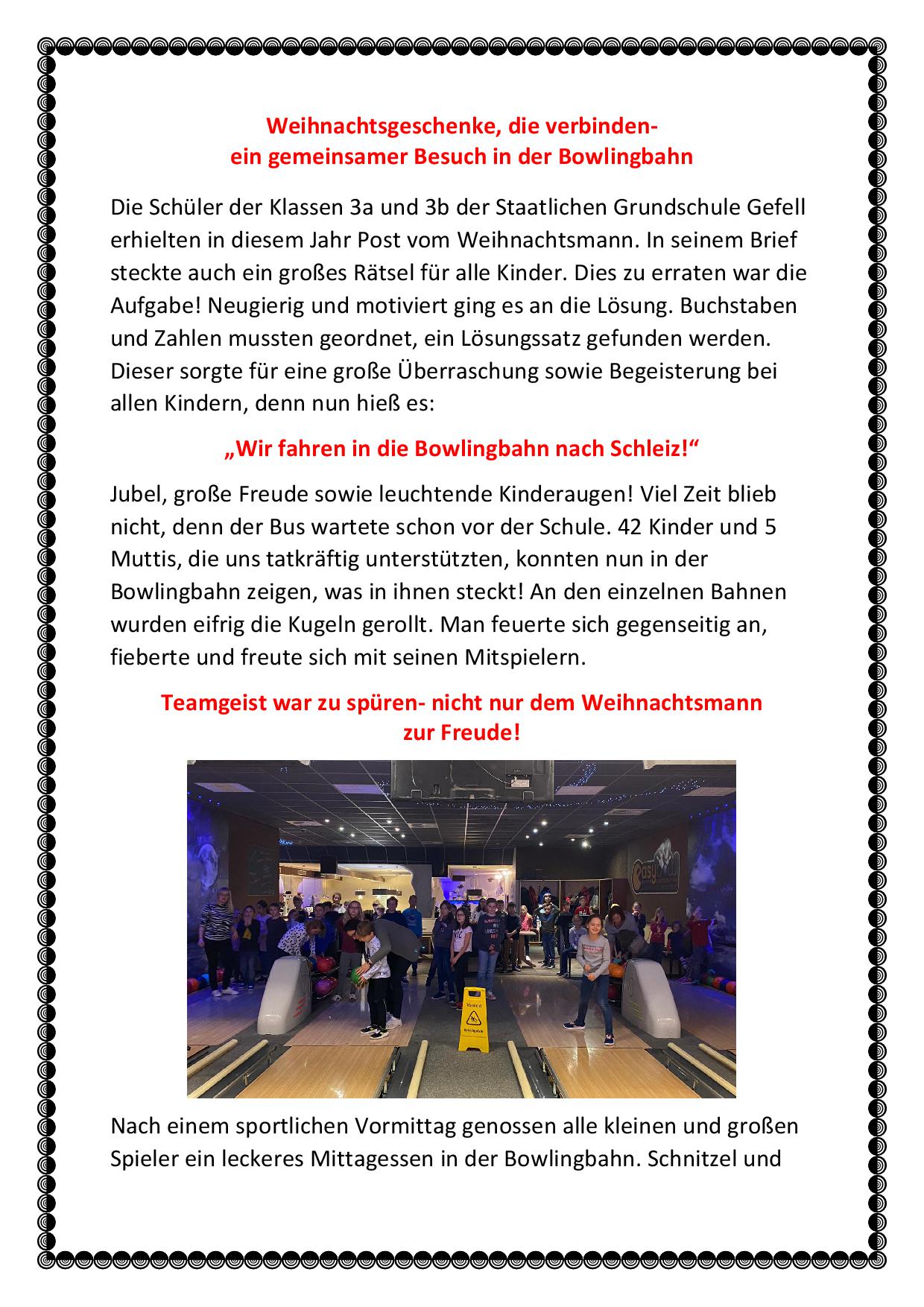 Weihnachtsfeier der 3. Klassen in der Bowlingbahn