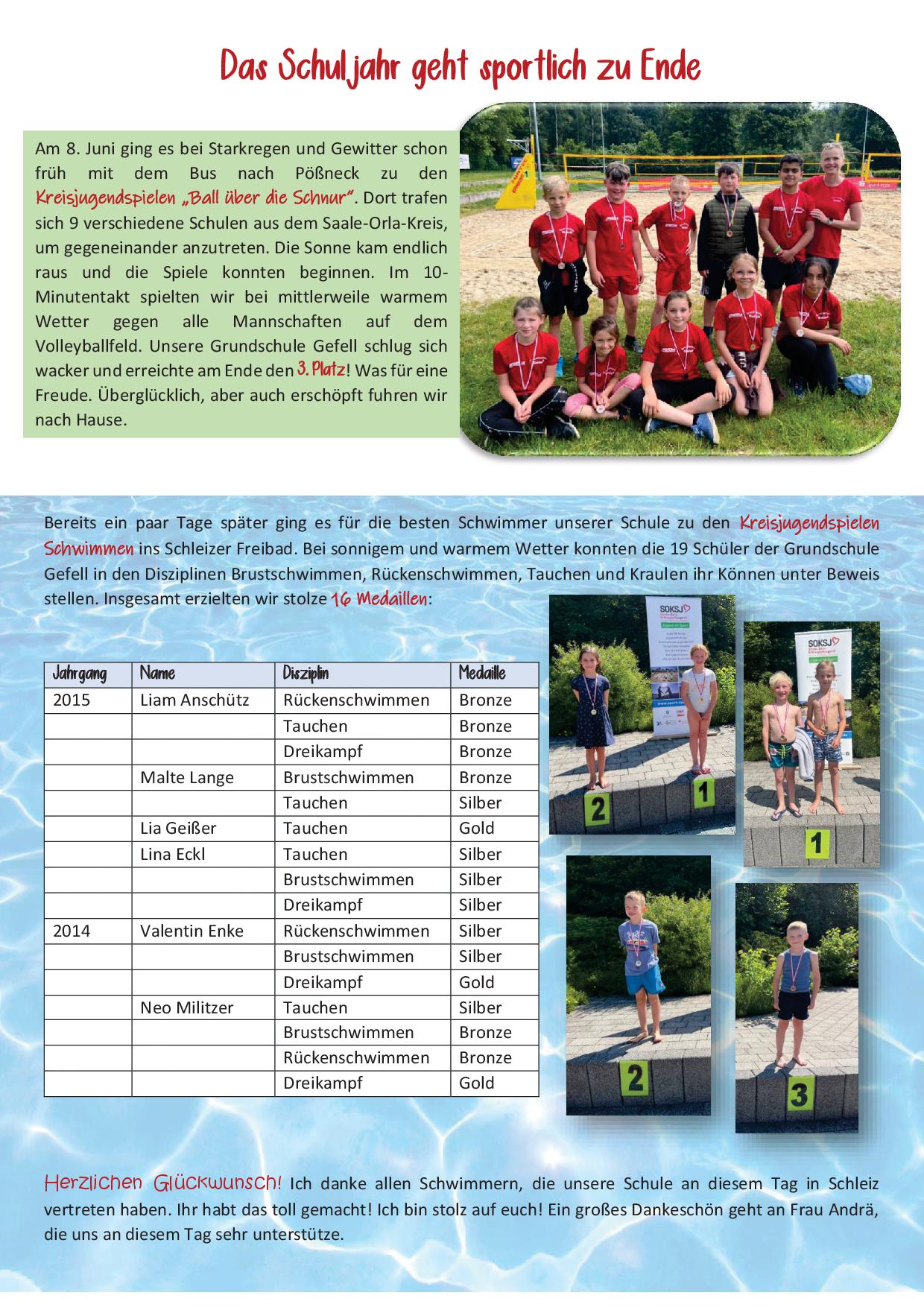 Das Schuljahr geht sportlich zu Ende