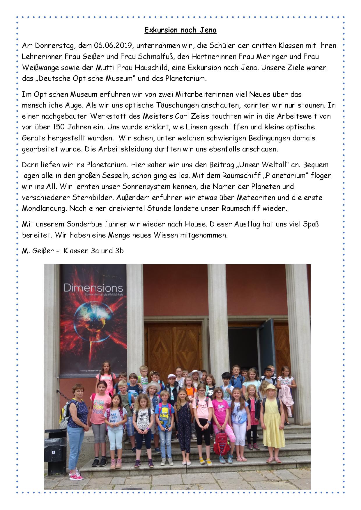 Exkursion nach Jena der dritten Klassen
