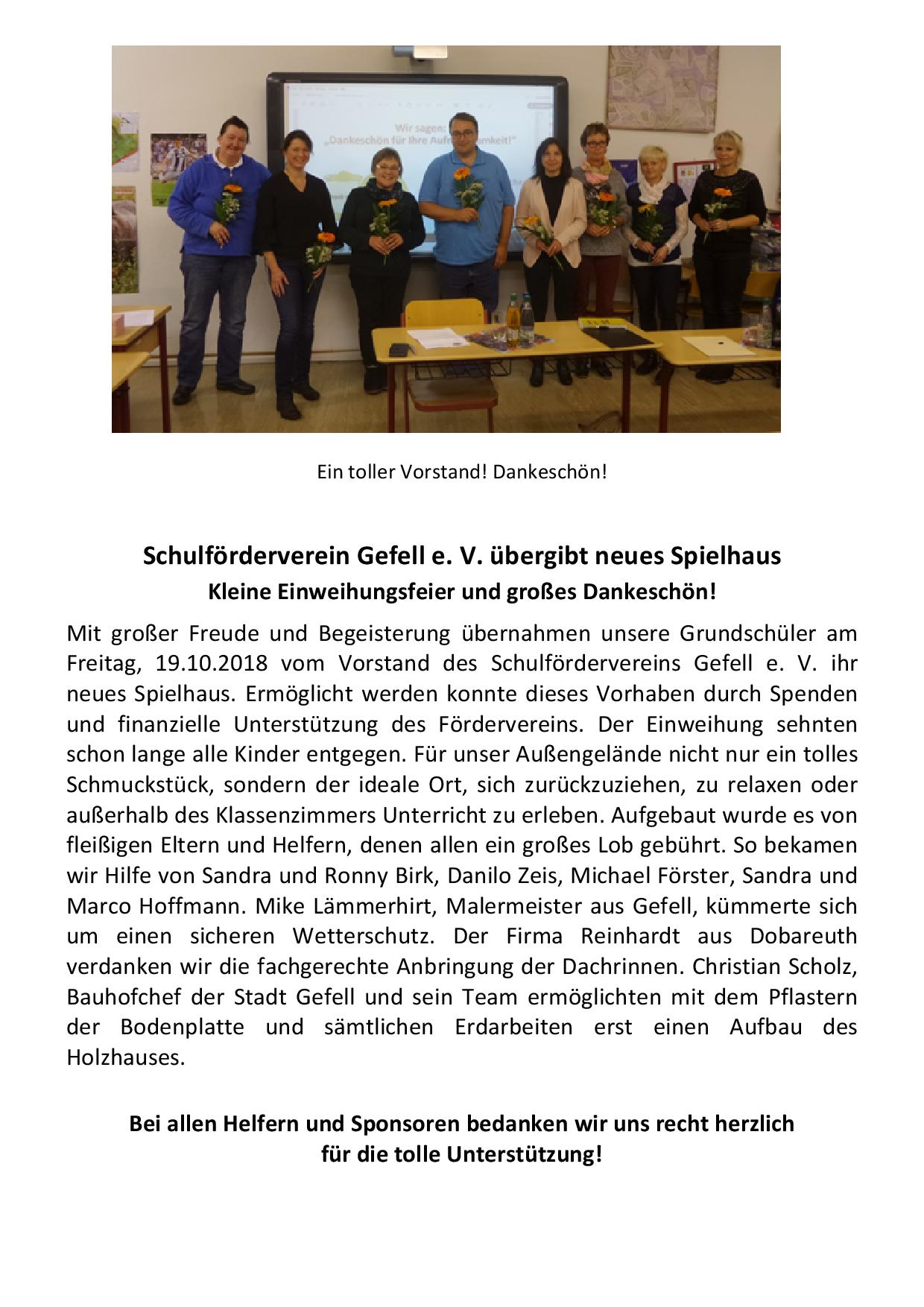 Unser Schulförderverein - Neues Spielhaus auf dem Schulhof