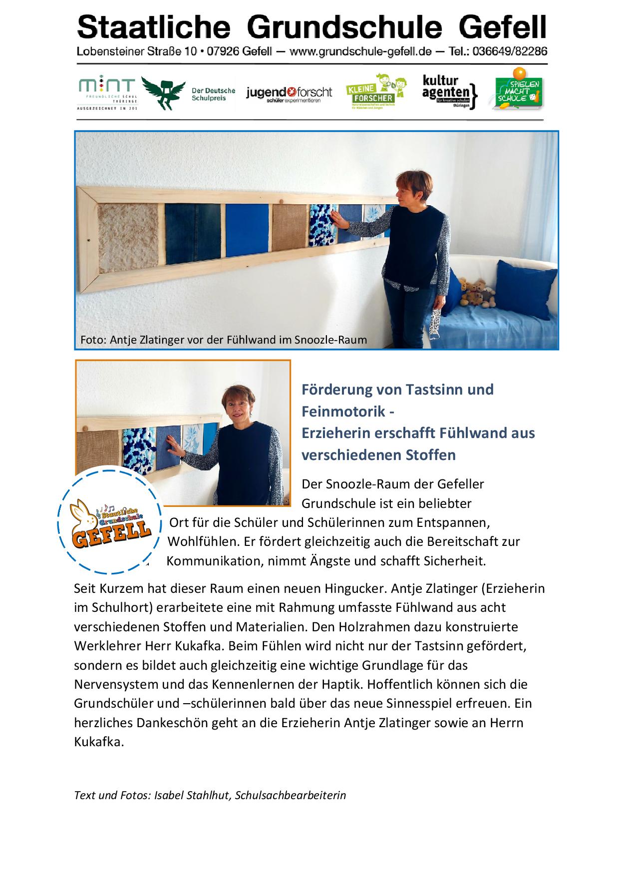 Fühlwand im Snoezelraum