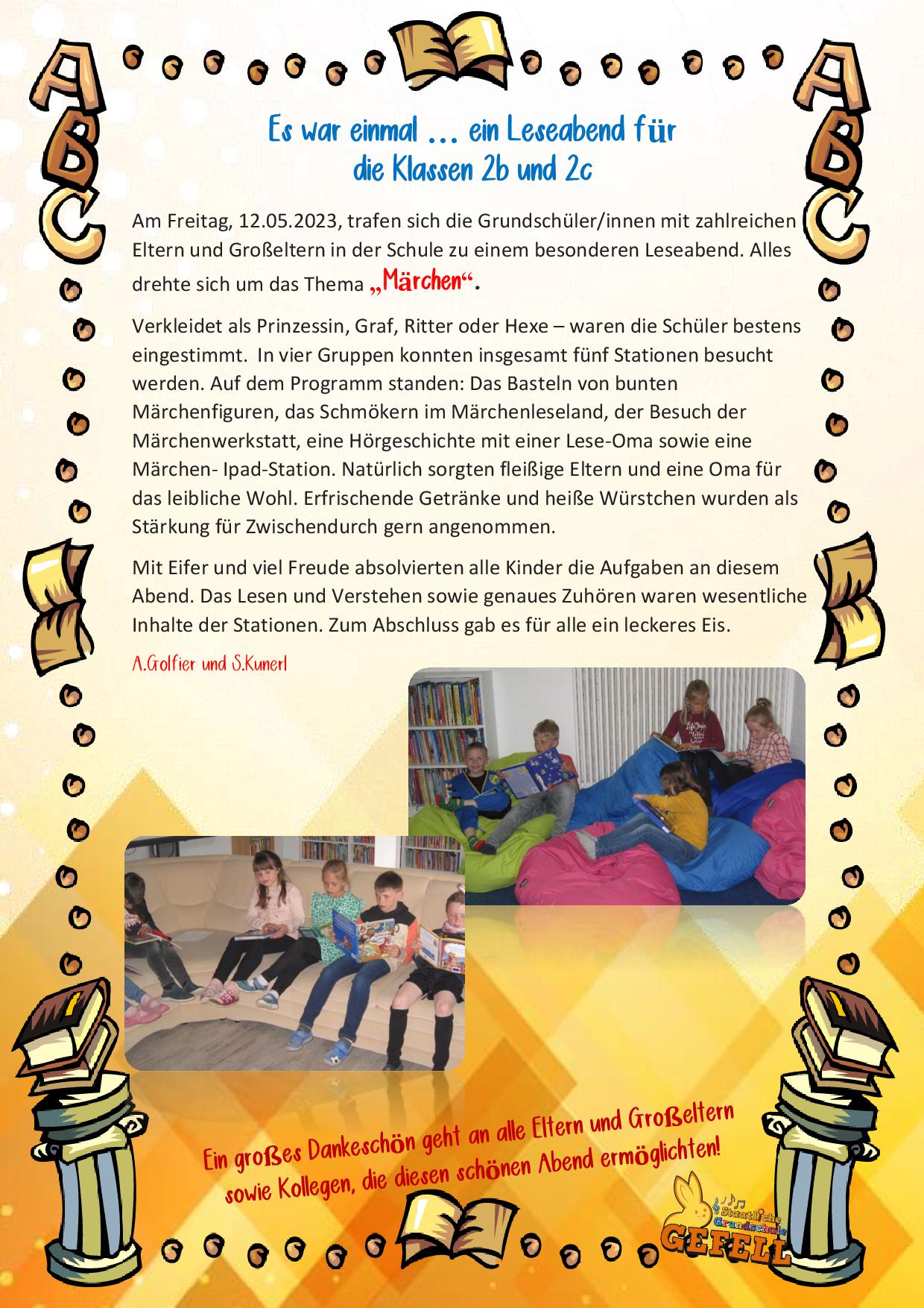 Leseabend der Klassen 2b und 2c