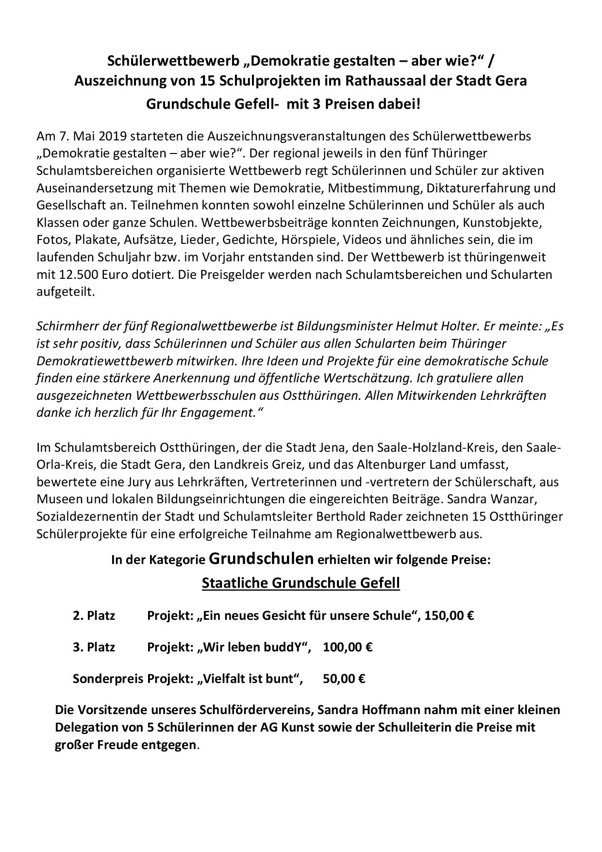 Schülerwettbewerk zum Thema Demokratie