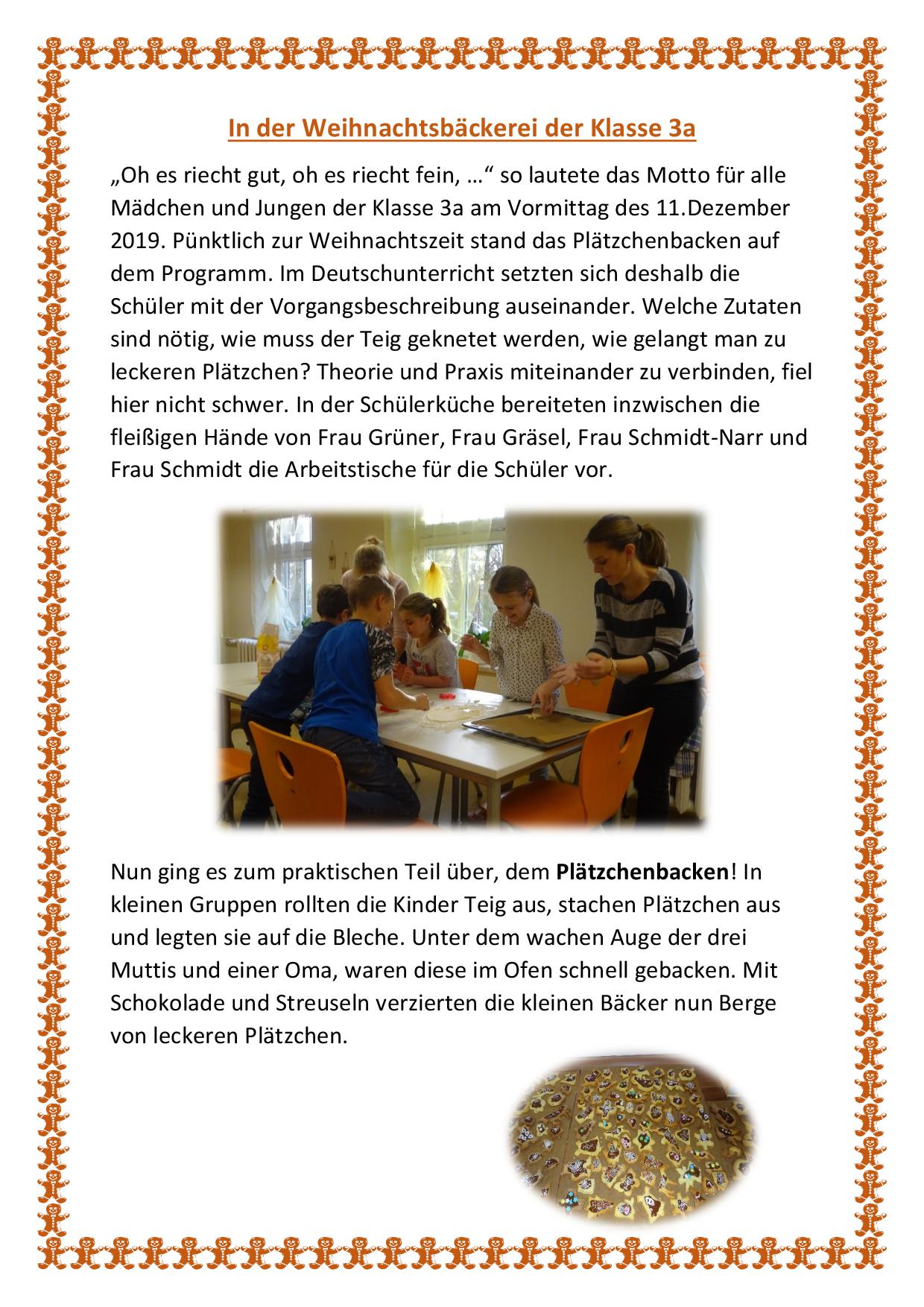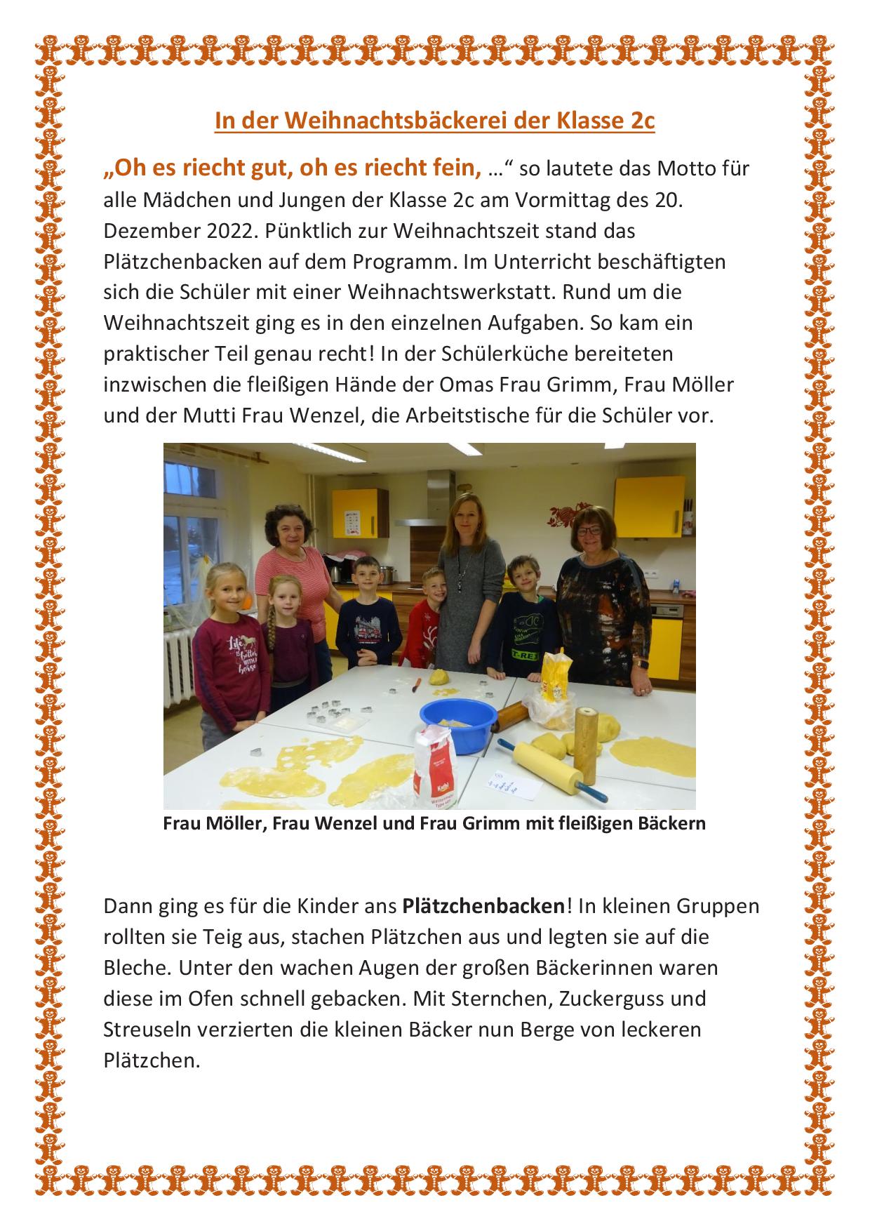 Weihnachtsbäckerei in der Klasse 2c