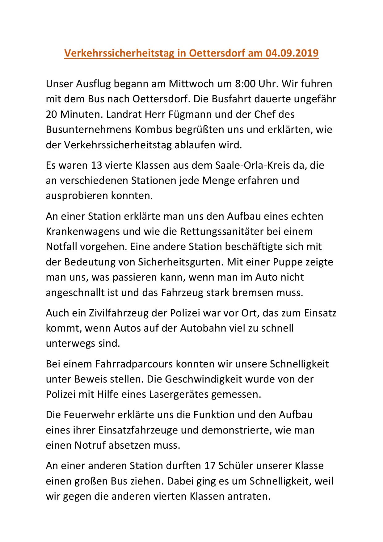 Verkehrssicherheistag in Oettersdorf für unsere 4. Klassen