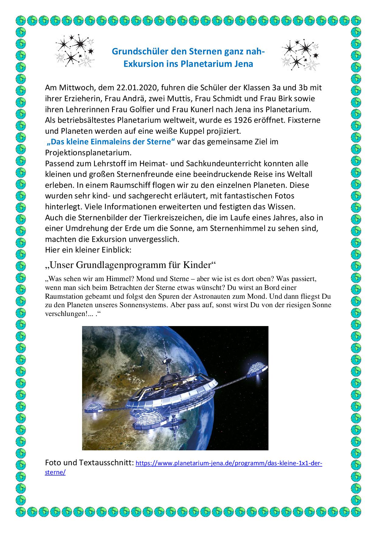 Exkursion ins Planetarium der 3. Klassen