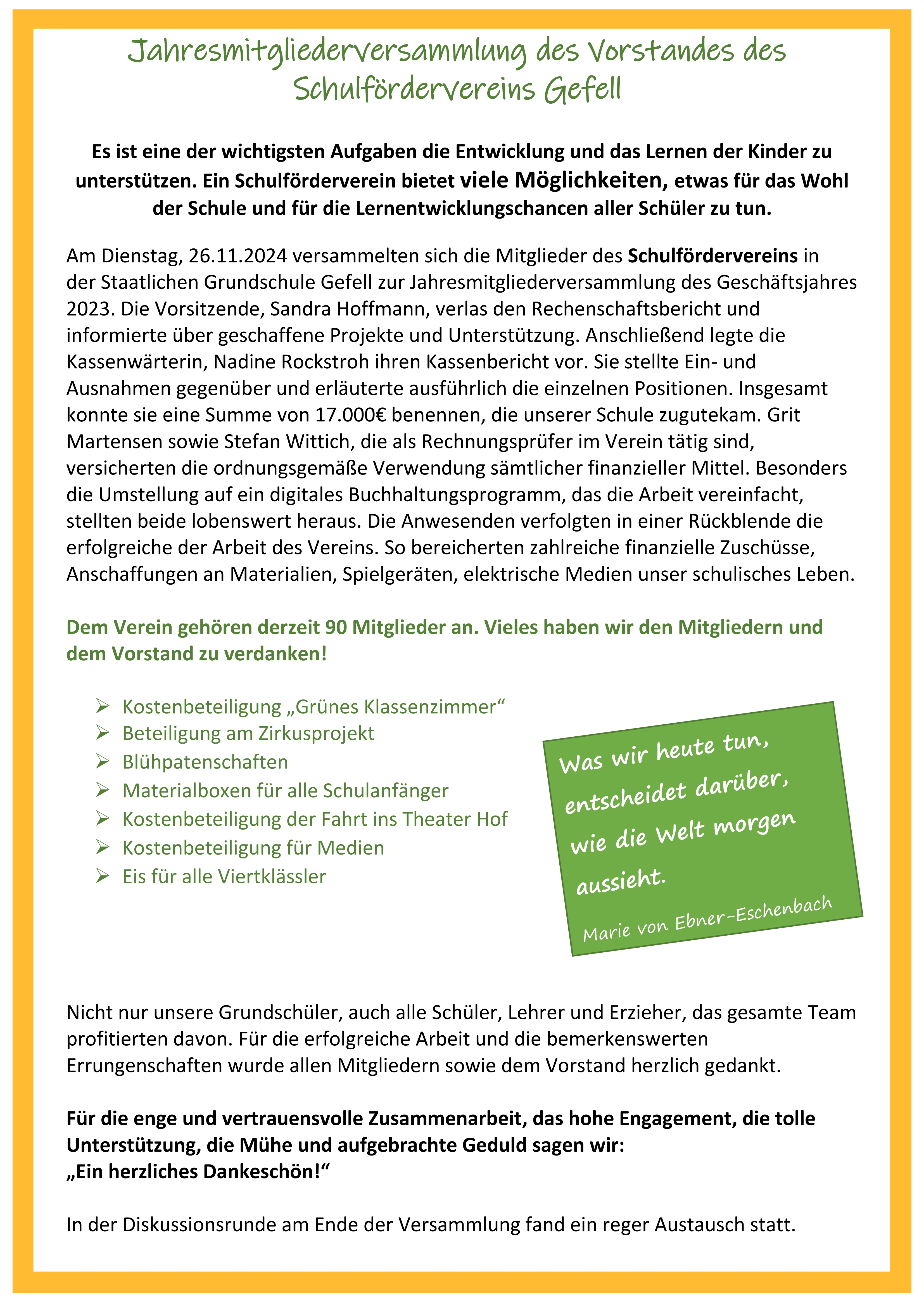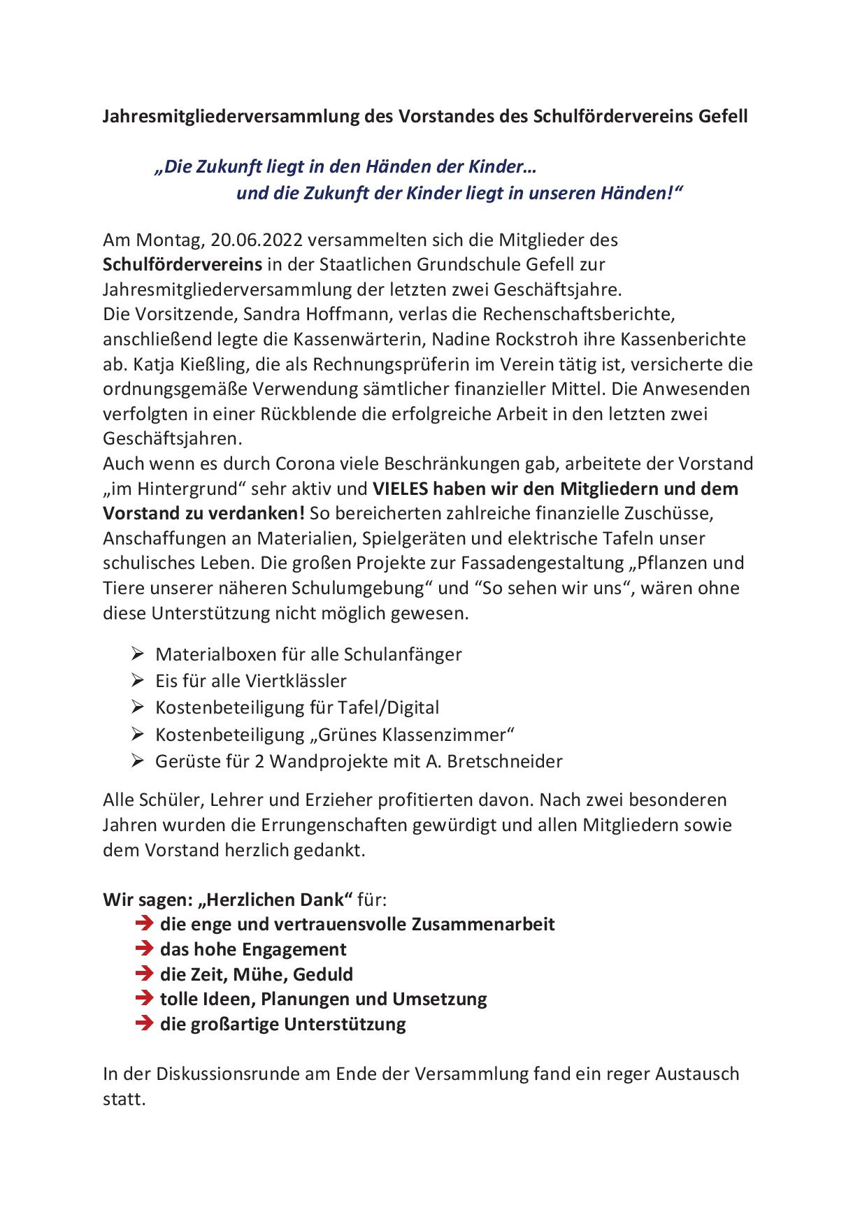 Jahresmitgliederversammlung unseres Schulfördervereins