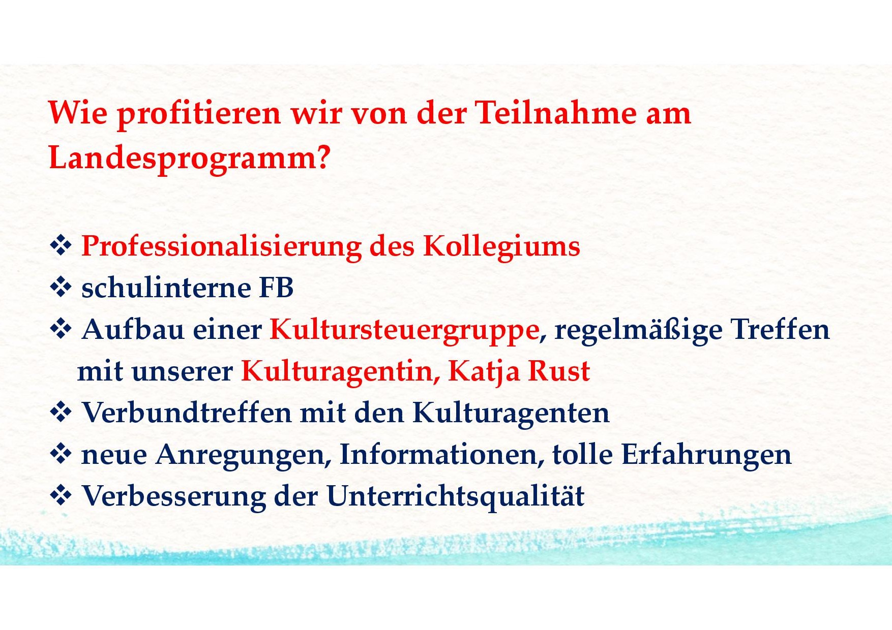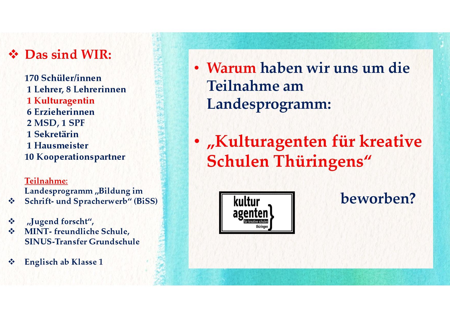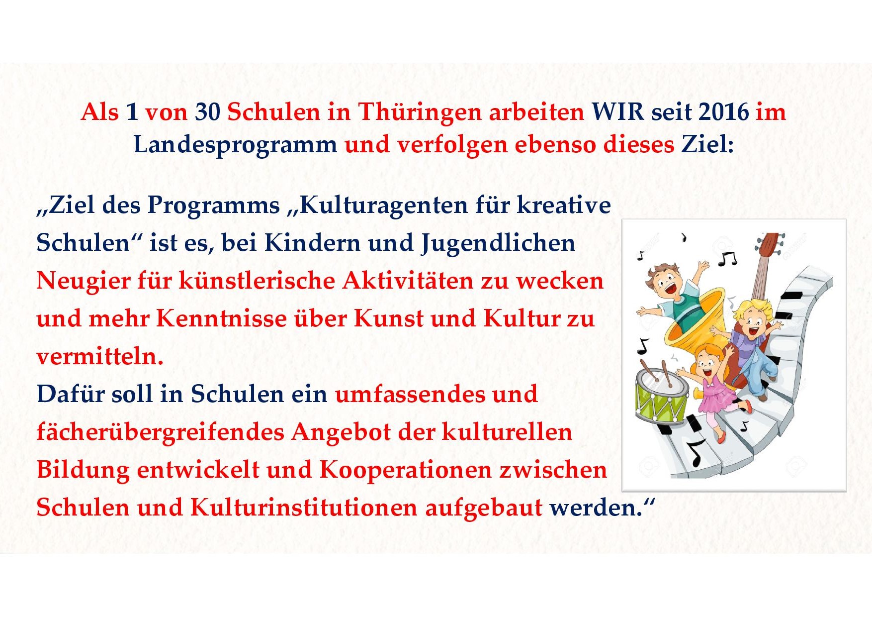 Teilnahme am Landesprogramm "Kulturagenten für kreative Schulen Thüringens"