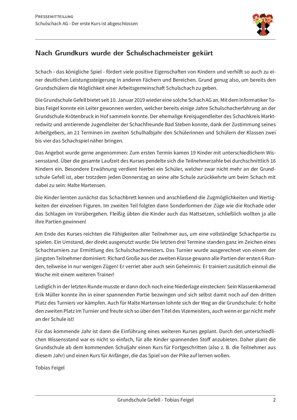 Vergangenes Schuljahr 2018/2019: