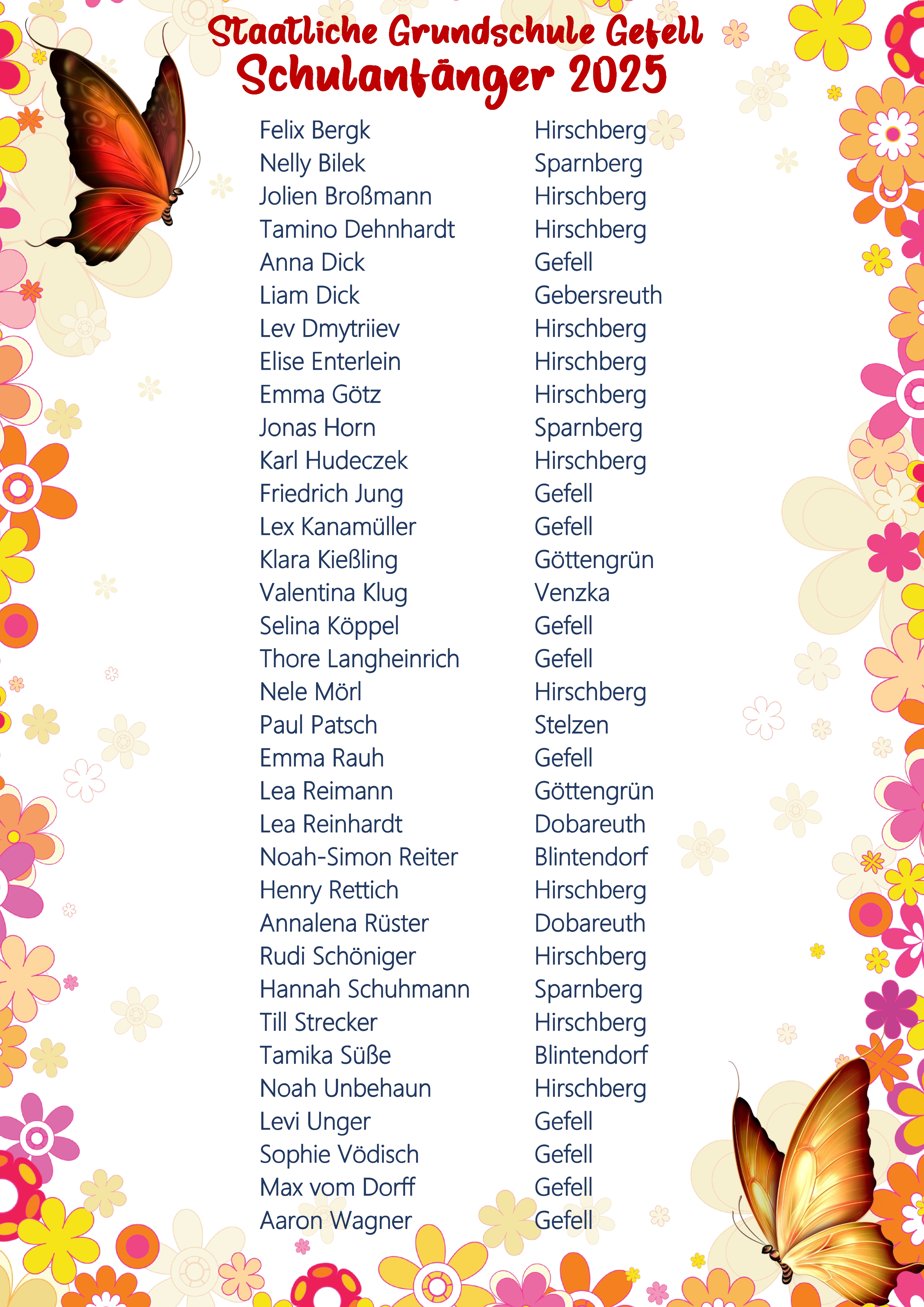 Unsere zukünftigen Schulanfänger im Schuljahr 2025/2026