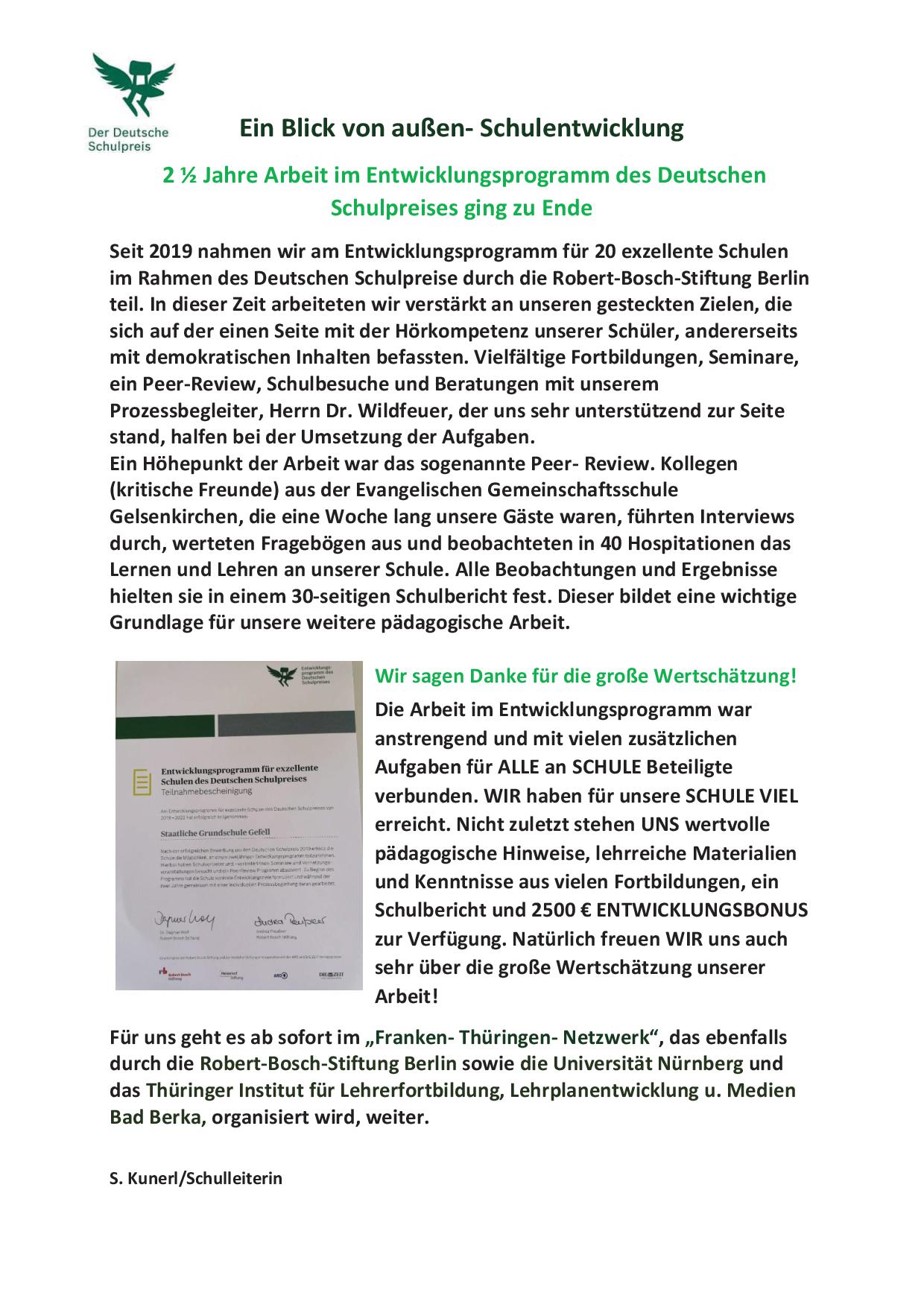 Arbeit im Entwicklungsprogramm des Deutschen Schulpreises