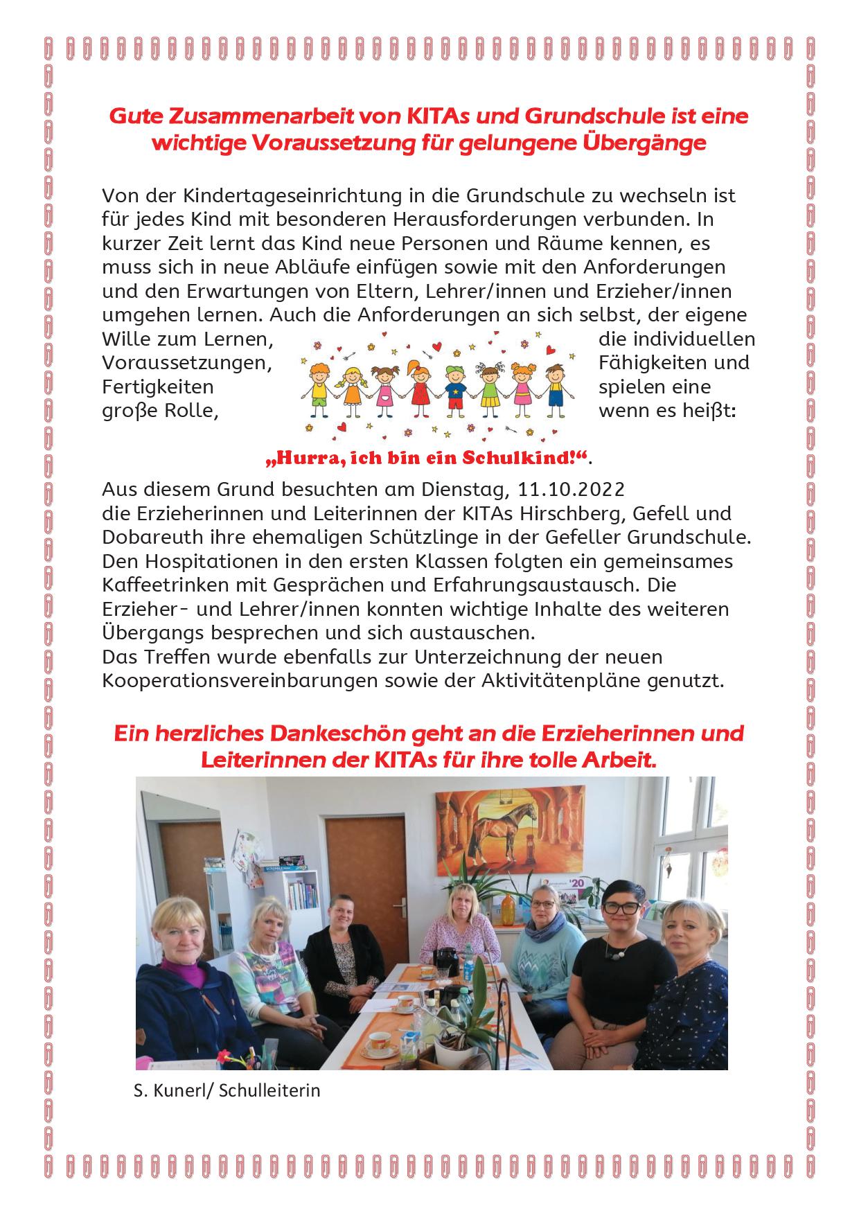 Enge Zusammenarbeit mit unseren Kindergärten