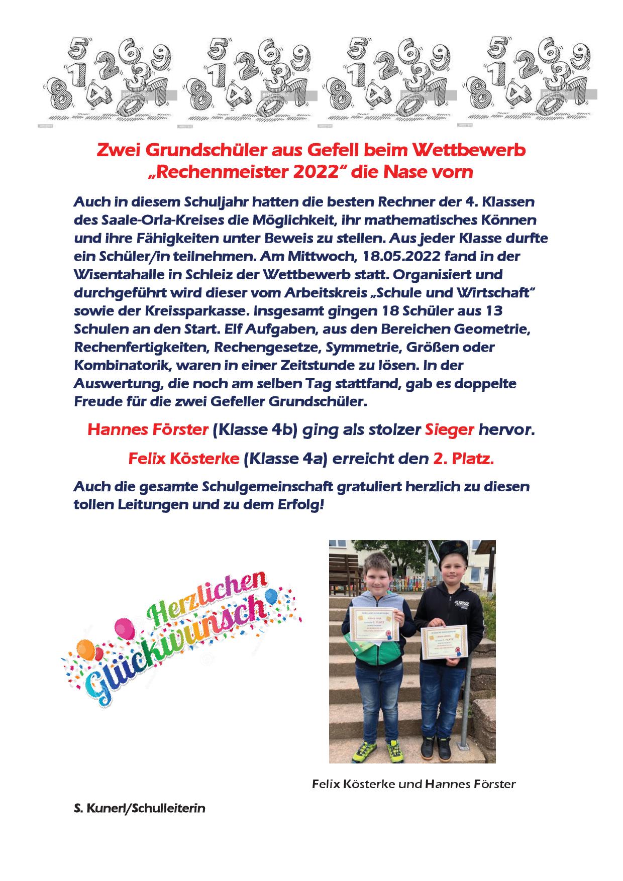 Erfolgreiche Teilnahme beim "Rechenmeister"