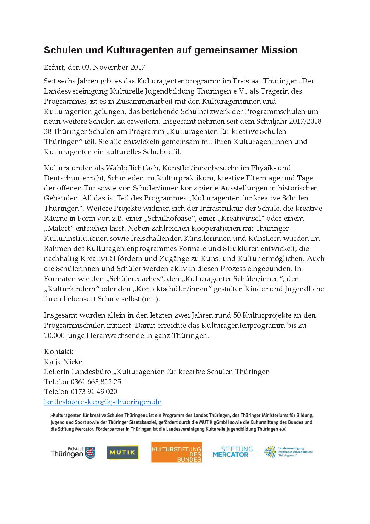 Ziel des Programms „Kulturagenten für kreative Schulen“ ist es, bei Kindern Neugier für künstlerische Aktivitäten zu wecken und mehr Kenntnisse über Kunst und Kultur zu vermitteln. Durch die Teilnahme unserer Schule können wir regelmäßig allen Schülern im besonderen Maße ein fächerübergreifendes Angebot im Bereich der kulturellen Bildung ermöglichen.