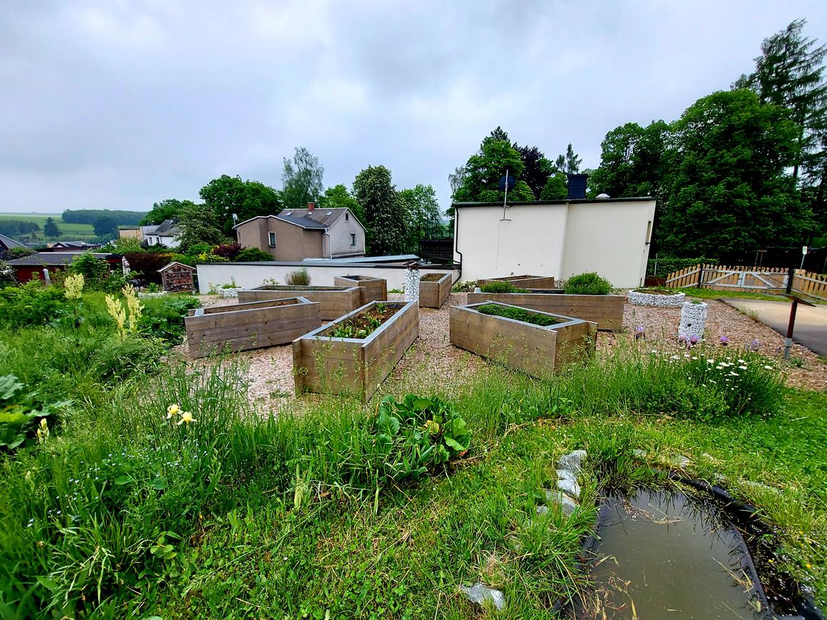 An den Schulhof schließt unser Schulgarten an.